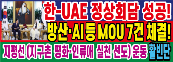 ¸¶Áö¸·À¸·Î Ȱºó´ÜÀº ¡°ÇÑ-UAE Á¤»óȸ´ãÀº ¼º°ø À¸·Î ³¡³µÁö¸¸, À̰ÍÀÌ ³¡ÀÌ ¾Æ´Ï¶ó Áö±¸ÃÌ ÆòÈ¡¤ Çù·Â¡¤Àηù¾Ö ½ÇõÀ» ¼±µµÇÏ´Â ÁöÆò¼± ¿Ü±³ÀÇ Ãâ¹ßÁ¡ÀÌ µÇ¾î¾ß ÇÑ´Ù¡±°í µ¡ºÙ¿´´Ù.